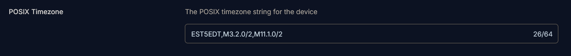 Set timezone to EST5EDT,M3.2.0/2,M11.1.0/2